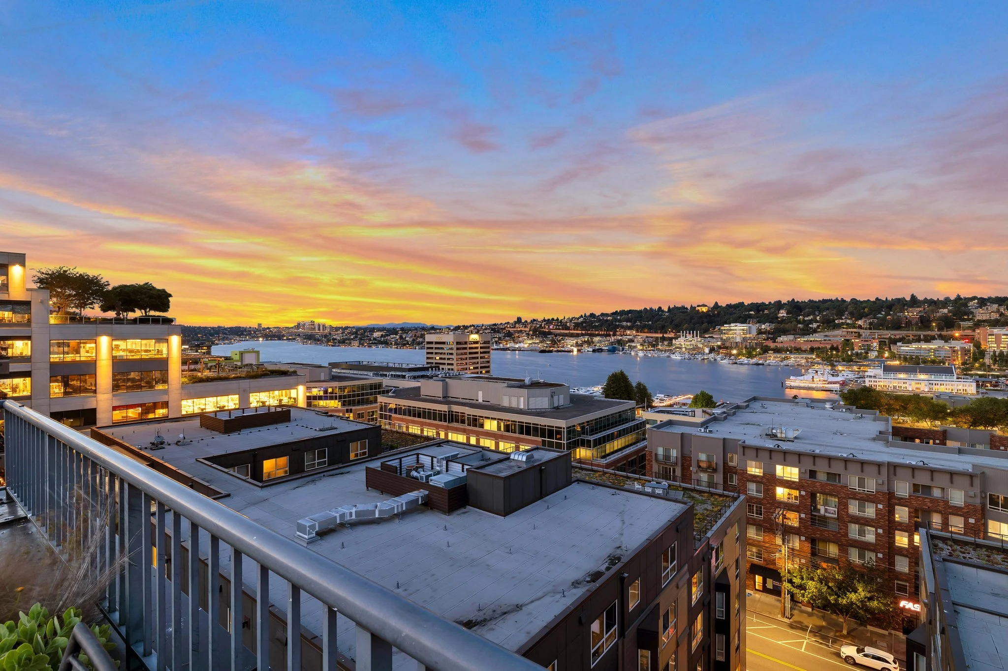 You will delight in being steps to the center of life in South Lake Union! Spacious retreat with simple access on foot, bike, or rapid ride bus to South Lake Union, downtown, Queen Anne and Fremont. This sprawling two bed two bath condominium with massive primary suite and walk in closet has it all. Designer bathrooms, luxury vinyl plank floors, new lighting and more. Open floor plan kitchen, dining and living room with gas fireplace flow out to private deck with storage. Kitchen includes many upgrades, excellent storage plus pantry. You will love to take in the lake and mountain views and sunshine from your new roof top deck with high end grills and space to relax or entertain. Secure garage parking, community rec room plus fitness room. Pets welcome, under thirty-five pounds. NO RENTAL CAP IN IDEAL RENTAL PROPERTY LOCATION!